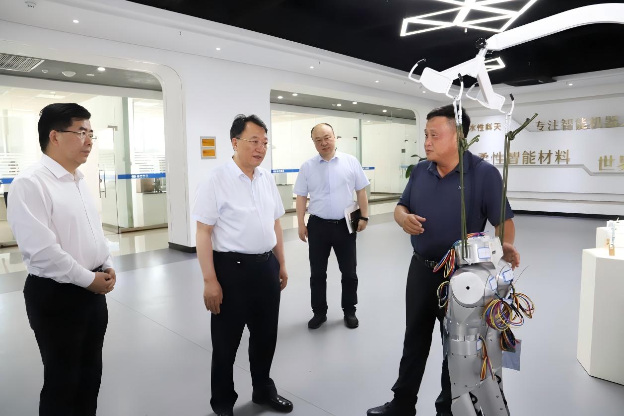 7月1日下午,合肥市委副書記、市長(zhǎng)羅云峰走訪合肥柔性科天機(jī)器人材料有限公司(以下簡(jiǎn)稱“柔性科天”),調(diào)研公司在人形機(jī)器人——柔性皮膚領(lǐng)域的研發(fā)與產(chǎn)業(yè)化進(jìn)展。市政協(xié)副主席、市政府秘書長(zhǎng)羅平及相關(guān)部門領(lǐng)導(dǎo)參加。科天集團(tuán)董事長(zhǎng)戴家兵博士、柔性科天負(fù)責(zé)人李維虎博士陪同匯報(bào)。
